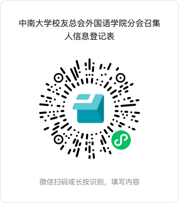 召集人负责联络区域校友、更新数据库信息、协助规划筹备大会流程、协调筹委会等工作。有意者请扫码填写《中南大学校友总会外国语学院分会召集人信息登记表》。学院在自荐人员中确认召集人,颁发母校正式聘任函。