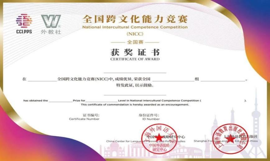 本考试同时作为全国跨文化能力竞赛National Intercultural Competence Competition活动举办,根据考试成绩排名确定省赛和全国赛奖项。