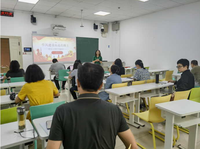 首先,党支部书记谢芸以“作风建设永远在路上——党史上的作风建设”为党课主题,和全体党员一起回顾、学习了中央八项规定精神的历史传承和现实意义。中国共产党自成立以来,始终高度重视作风建设,将其视为关系党的形象、人心向背和生死存亡的重大问题。作风建设贯穿党的百年奋斗历程,是党不断自我净化、自我完善、自我革新、自我提高的重要体现。谢芸结合大量生动鲜活的历史案例,以“用延安作风打败西安作风”“不要沾染官僚主义作风”“切实把我们的党风搞好”“八项规定一子落地,作风建设满盘皆活”为提纲回顾总结了党的作风建设历程。