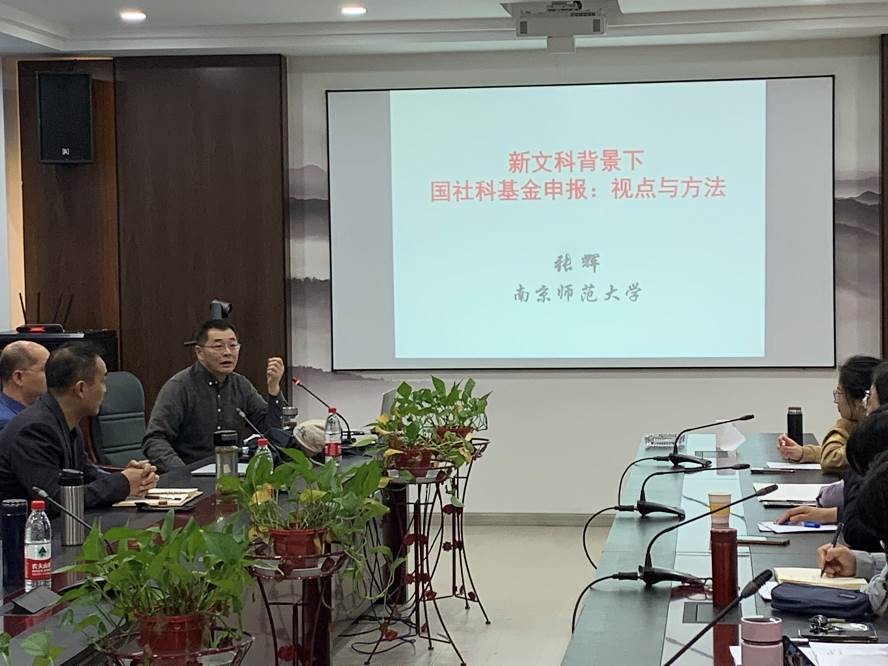 43日下午,南京师范大学特聘教授、博士生导师张辉做客“湘江外国语言文学论坛”,以“新文科背景下国家社科基金申报:视点与方法”为讲题,分享了其在国家社科基金申报与评审方面的丰富经验和独到见解。讲座由院长杨文地教授主持,副院长范武邱、仲文明、鄢宏福等出席,数十名师生参与并展开讨论交流。