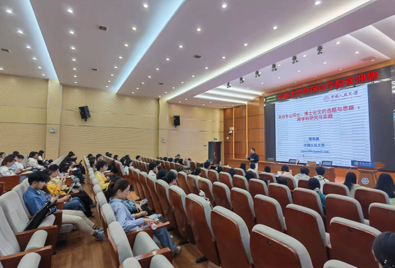讲座主题为“英语专业硕士、博士论文的选题与思路:跨学科研究与实践”。郭英剑教授以跨学科研究定位为切入点,分享了文学跨学科研究近年来的新进展。基于对哈佛大学近二十年英语文学类硕士与博士论文的考察,郭英剑教授总结了哈佛大学英语文学类硕士与博士论文选题与思路的主要类型和特点,发现其呈现出明显的跨学科、跨领域、跨时空、跨媒介和跨语种等特点。郭英剑教授给在场师生提出宝贵建议,即英语专业学子不仅要扎实学术素养,同时要培养开阔的学术视野,勇于尝试跨学科论文选题,注重选题的创新性、学术性和系统性。