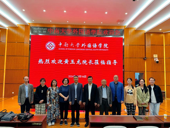 20241016日,中国外文局翻译院院长黄玉龙行应邀来我院指导交流。中国外文局翻译院翻译研究部兼翻译专家工作部主任张雅明、办公室主任孟津、外国语学院院长杨文地、教授委员会主任李清平、副院长范武邱、仲文明、王华玲和师生代表出席了座谈会。