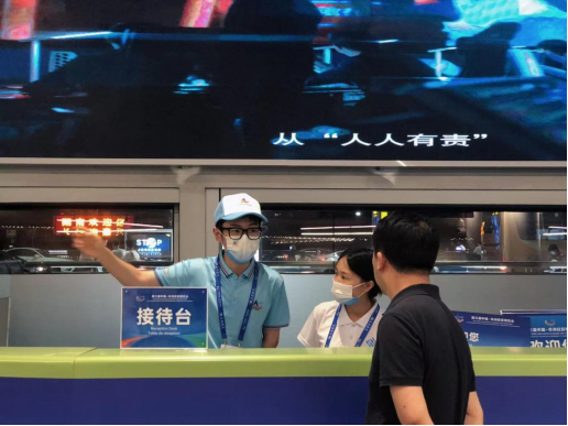 博览会期间,展览展示部志愿者肩负着维系现场秩序的重要任务。中南志愿者在各自岗位上默默付出,为博览会顺利进行和参展商、观众的良好体验贡献了自己的力量。