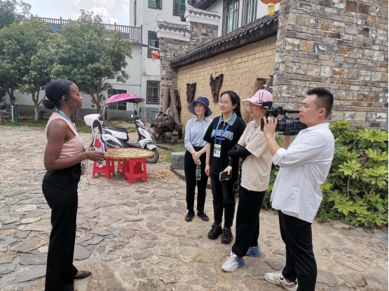 2021级笔译方向申元洁同学承担介绍中非妇女创新创业成果展的任务。她通过展示照片墙中的中非合作故事,向观众介绍了湖南“女膜王”创业销售手机膜的故事,展示了湖南独特的茶文化“五色”茶,展示了湖南女工协会手编作品、棕编、烙画、湘绣、女书、醴陵陶瓷等丰富多样的艺术与手工艺品成果。张宇涵同学陪同布隆迪驻华大使馆参赞参会并参观展馆,殷玥同学担任导游并引领嘉宾参观文化景点,2022级口译方向刘原君和卢海晴同学陪同嘉宾参观历史场馆。他们的陪同服务为嘉宾提供了良好的导览和交流体验,帮助外宾了解社区服务和促进经贸合作的情况,向嘉宾们展示了这些地方的历史文化和特色,让他们深入了解中华文化的瑰宝,介绍毛泽东主席的伟大事迹和中国革命历史,展示了中华民族的奋斗精神和伟大成就。马昭睿同学积极参与媒体采访,向外国友人和中国游客提供双语讲解。申元洁和徐雨纯同学作为翻译志愿者,为媒体、外国友人和参观者提供专业翻译服务。李万意同学担任中非妇女创新创业成果展讲解员,央视记者来到中非经贸博览会妇女创新创业论坛进行采访,李万意同学为其引导进行示范讲解,亮相央视。2022级口译方向殷玥同学在活动期间承担了多项重要职责,包括主论坛开幕仪式的负责、主论坛的画外音工作,以及韶山领袖故居的导览和媒体采访翻译工作。她精湛的口译能力和全方位服务,为活动的顺利进行和信息传递作出了积极贡献。
