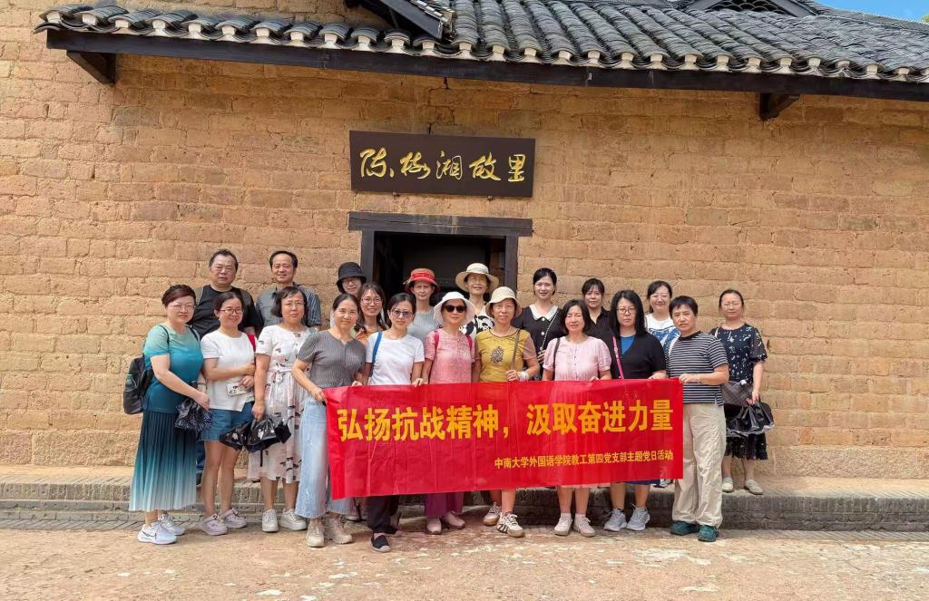 2025年9月12日,抗战胜利80周年之际,中南大学外国语学院大外二教工会小组赴长沙县影珠山抗战遗址和陈树湘故居参观,开展“铭记抗战史,携手迎新程”主题秋游,以沉浸式党史学习凝聚团队力量,为新学期蓄能。