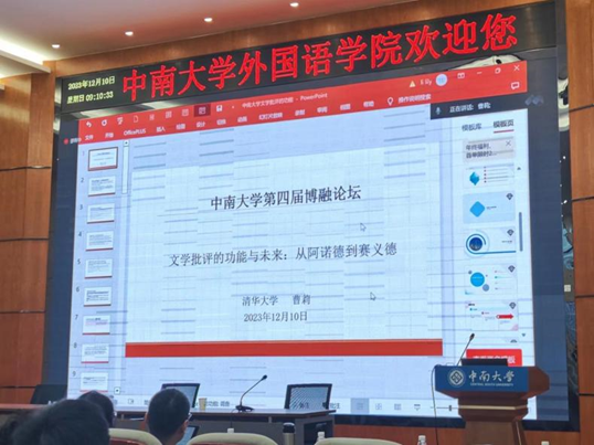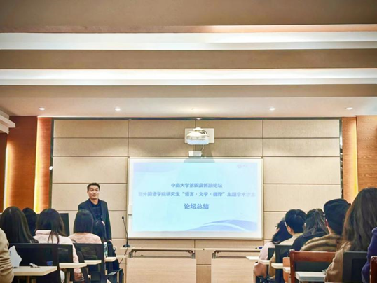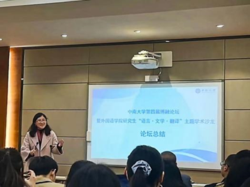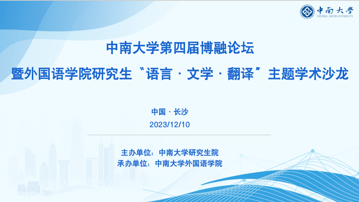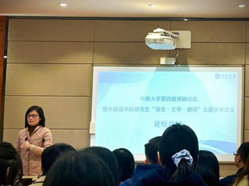 为加强我院研究生学术交流,提高研究生学术素养,营造浓厚学术氛围,由中南大学研究生院主办、外国语学院承办的中南大学第四届博融论坛暨外国语学院研究生“语言•文学•翻译”主题学术沙龙于1210日在外国语学院国际报告厅顺利举办。