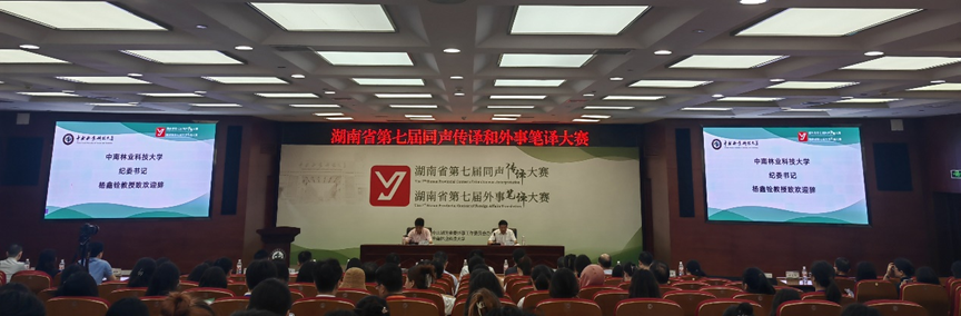 6月16日,由中共湖南省委外事工作委员会办公室主办,中南林业科技大学承办的湖南省第七届英语同声传译大赛与外事笔译大赛在长沙举行。本次大赛吸引了来自省内30余所高校及社会翻译界的145名选手参加。我院共派出研究生、本科生共计十名选手参赛,全员获奖。