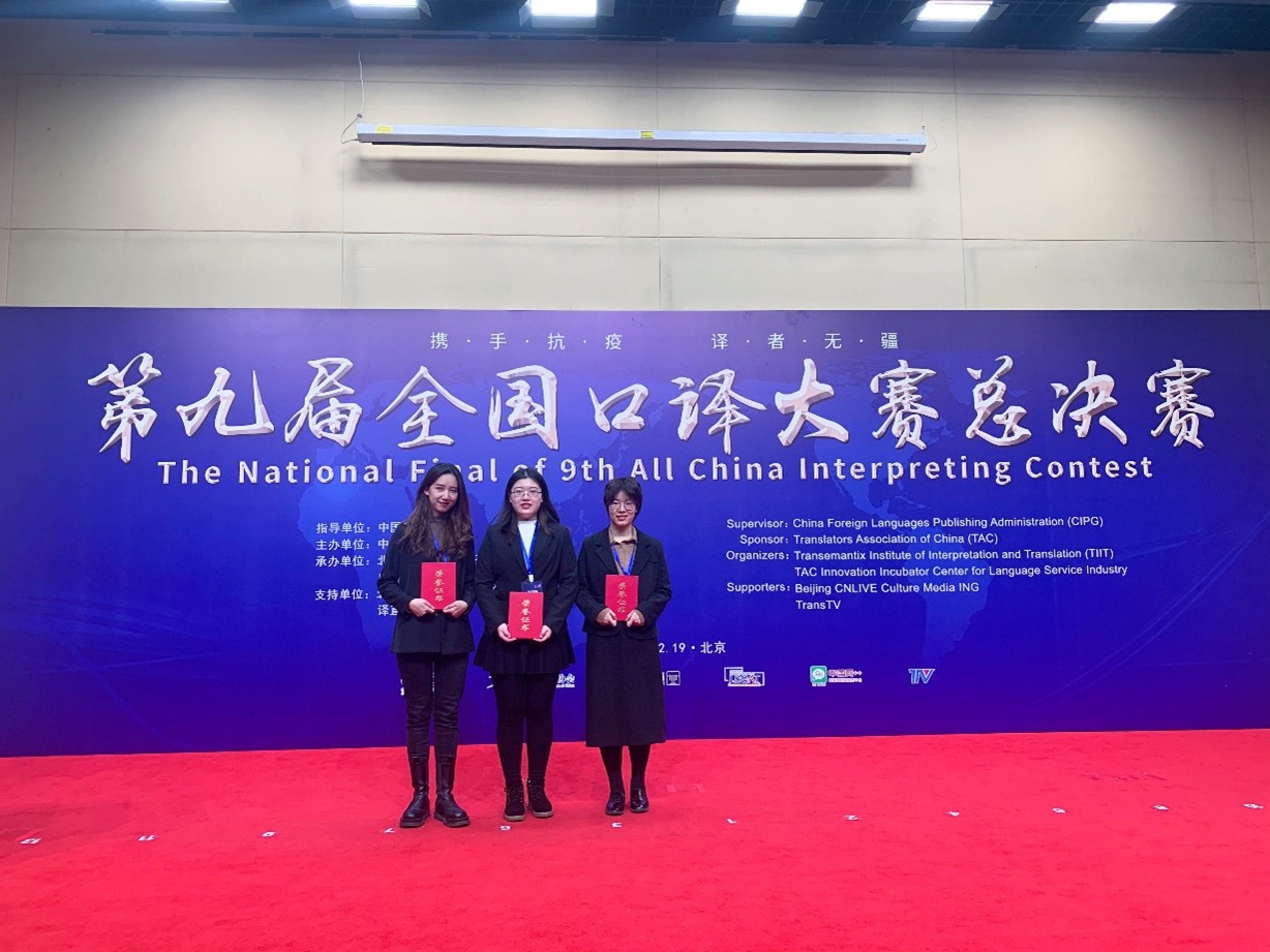 本次大赛共有来自全国各省市、港澳台地区以及海外五百多所高校的近万名优秀选手参加了预赛、复赛和大区赛,共有56名选手进军1219日在京举行的交传总决赛,比赛内容为英汉互译和汉英互译,题材包括5G、嫦娥5号、中美贸易战、新冠疫苗等,具有一定难度。选手经过激烈角逐, 决出了包括冠、亚、季军在内的交传一等奖10人,二等奖15人,三等奖30人。