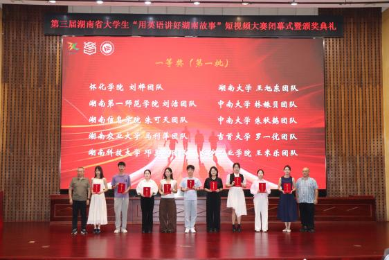 近日,中共湖南省委外事工作委员会办公室、中共湖南省委教育工作委员会、湖南省教育厅联合发文,公布第三届湖南省大学生“用英语讲好湖南故事”短视频大赛获奖名单,我校学生再创佳绩。自今年5月启动备赛以来,我院积极组织学生参赛。经5月24日至6月10日校赛选拔,5部作品从37部作品中脱颖而出晋级省赛,其中3部作品荣获省一等奖、2部作品分获省二、三等奖,创下我校在该赛事中的最佳成绩。由阎勇、Christopher Cochran(田凯瑞...