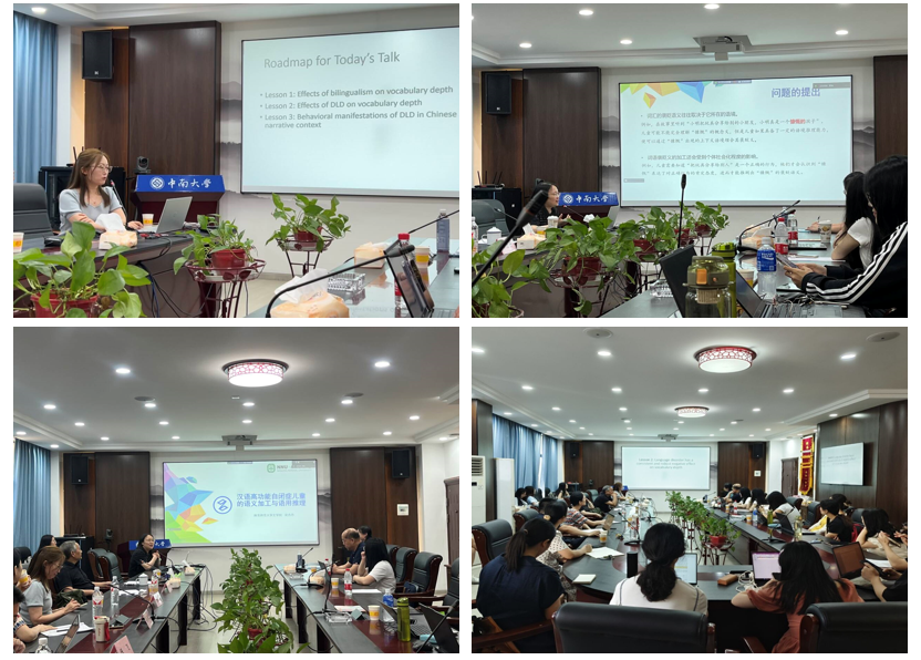 2024年7月8日,香港理工大学盛欐教授、南京师范大学梁丹丹教授应邀做客中南大学外国语学院湘江语言学论坛发展心理语言学专题研讨会,以儿童语言习得与障碍为主题,为我院师生带来了两场引人入胜的学术讲座。两场讲座分别由李清平教授和苏怡教授主持,院长杨文地出席。 参会人员有我院教师和硕博士研究生,湖南大学的陈飞教授、许静芬教授、曾晓燕副教授等一同参与交流。第一场讲座由盛欐教授主讲,讲座题目为“Individual Diffe...